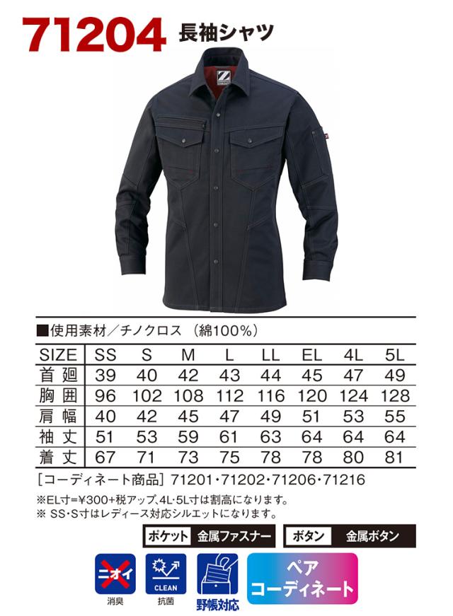 男女共用 ジャンパー (秋冬春夏兼用商品) 自重堂 Z-DRAGON 71204 (綿100%)EL(3L)