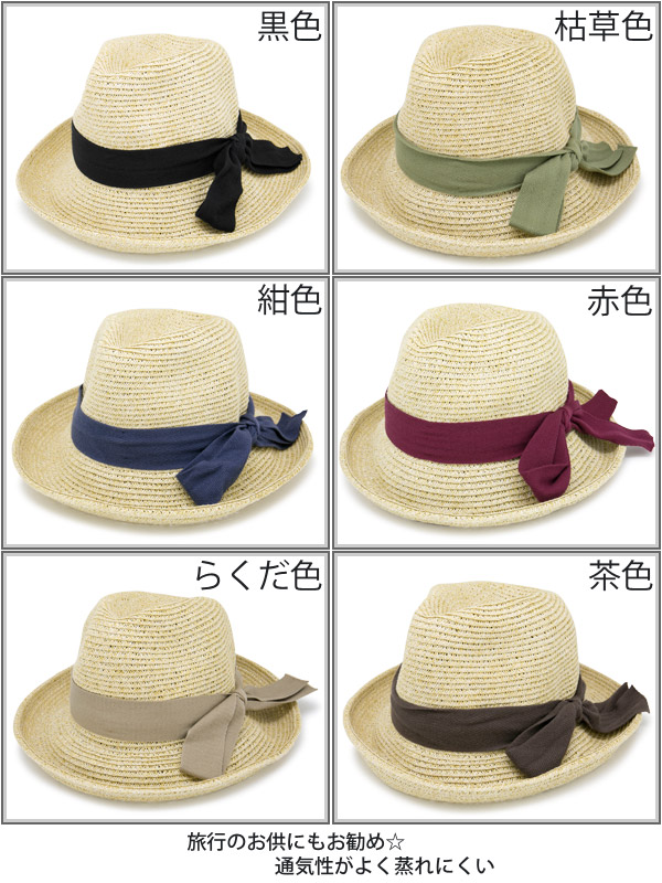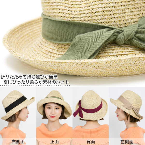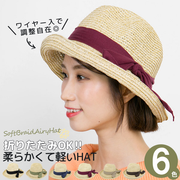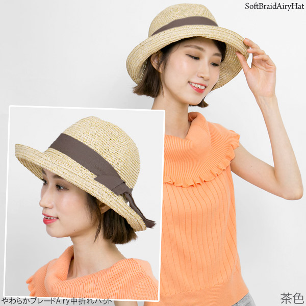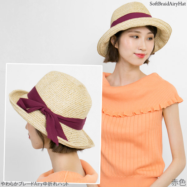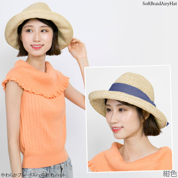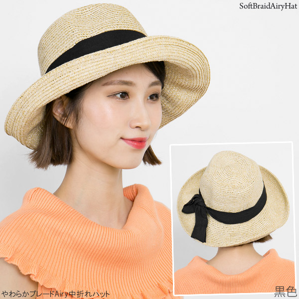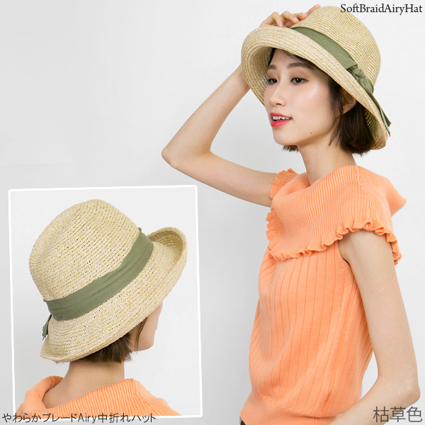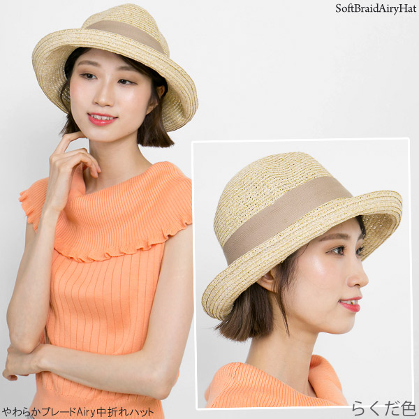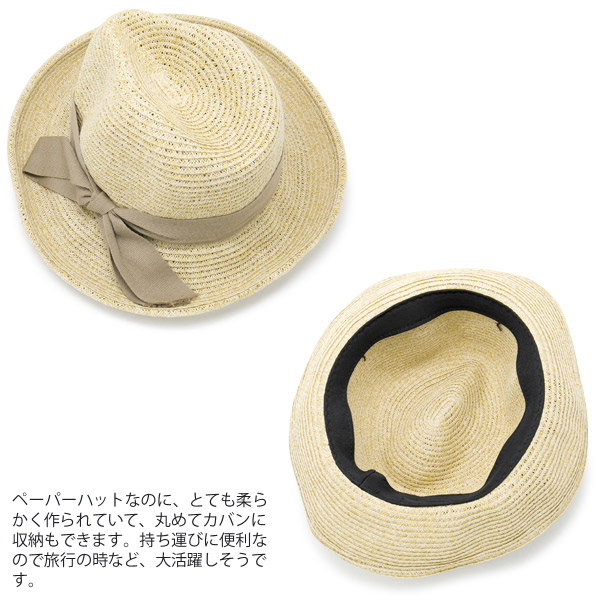 軽量ハット レディース [メール便可] ペーパーハット 麦わら帽子 春夏 折りたたみ / やわらかブレードAiry中折れハット
