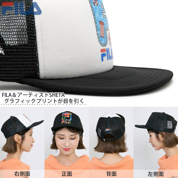 FILA 帽子 メンズ レディース CAP 春夏 サイズ調節 グラフィック / FILA(フィラ)SHETAコラボ メッシュキャップ