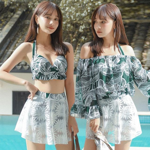 キュートな雰囲気とセクシーさを兼ね備えたビキニ+トップス+スカパン 3点セット タンキニ水着★