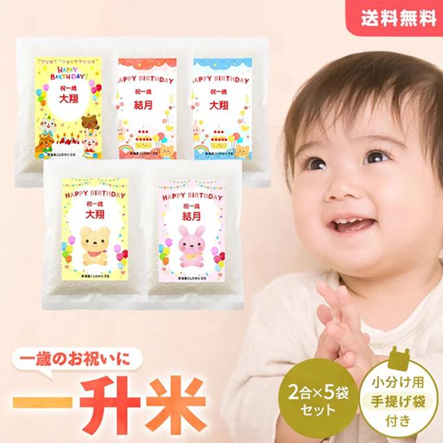 一升餅の代わりに 一 升 米 1 歳 新潟産コシヒカリ2合5個(300g*5個) 真空パック 北海道〜九州は送料無料 一歳 誕生日 名入れ 一升米セット