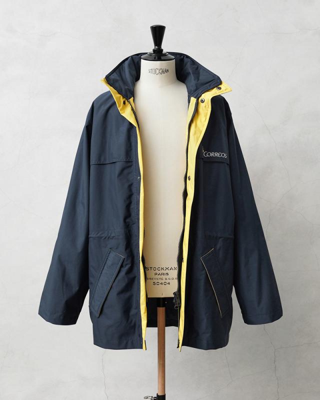 スペインの郵便事業を担うCorreos(コレオス)で配達員が実際に使用していたナイロン レインジャケットがデッドストックで入荷しました!コレオスの歴史は古く、その起源は1716年にさかのぼります。こちらのレインジャケットは1990年代から使用されていたモデルですが、ロゴ刺繍が2000年から2010年まで使用されていたデザインになります。よって、製造年代も2000年から2010年までの10年間という短い期間で使用された現在は入手困難なCorreosのジャケットです。ネイビーとイエローの配色が良く、機能性も兼ね備えたジャケットです。なかなか放出される事のない希少なアイテムですので、この機会に是非ご検討ください。