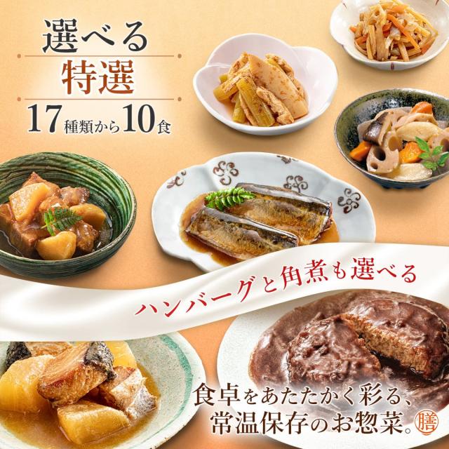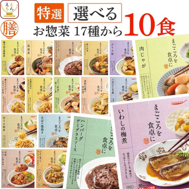 母の日 レトルト食品 常温 惣菜 おかず 詰め合わせ 膳 特選 17種から 選べる 10食 セット 【 送料無料 沖縄以外】 国分 tabete レトルト お惣菜 和食 洋食 肉 魚 野菜 ハンバーグ 肉じゃが レンジ 湯煎 備蓄 保存食 2026 新生活 内祝い ギフト