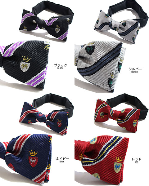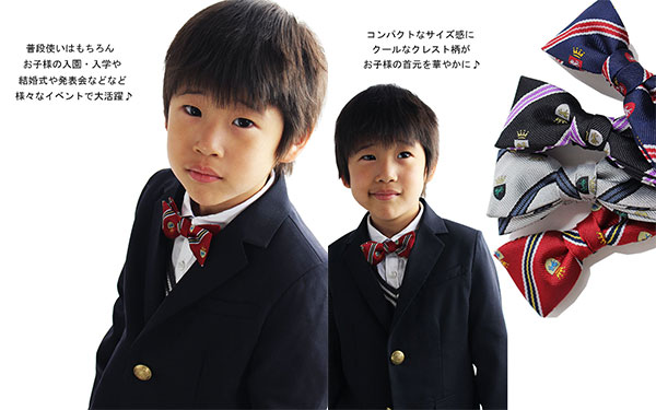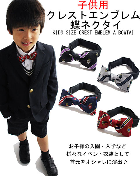 『エンブレム柄』『クレスト柄』『レディース蝶ネクタイ』『キッズ蝶ネクタイ』『子供蝶ネクタイ』『入園式』『入学式』『卒業式』『卒園式』『結婚式』『お受験』『ステージ衣装』『カジュアル蝶ネクタイ』『おしゃれ』