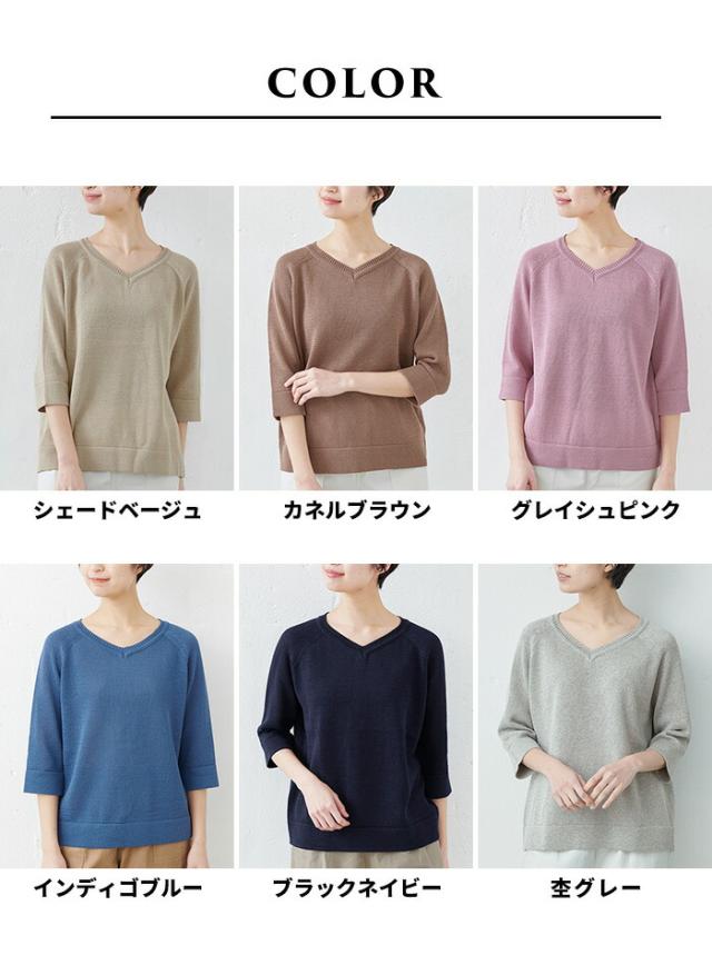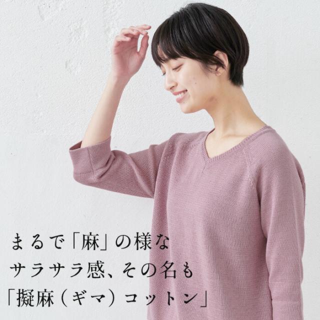 綿ニット コットンニット レディース 七分袖 ギマコットン100% Vネック プルオーバー 日本製 きれいめ トップス 40代 50代 60代 30代 女性 ファッション 大人服 ニット 7分袖 春 冬 秋 カジュアル サマーニット M L LL 大きいサイズ コットン 擬麻コットン さらさら 春 冬 秋 トップス カジュアル