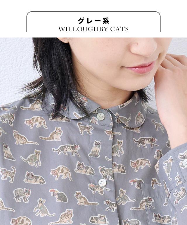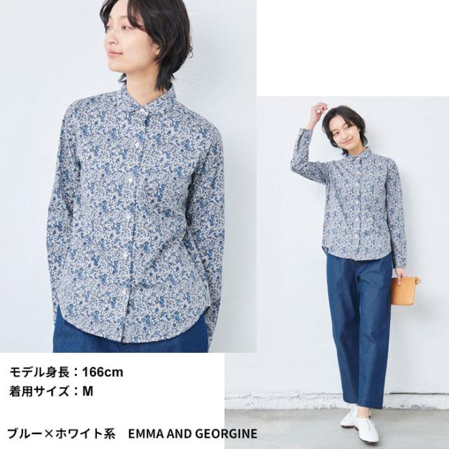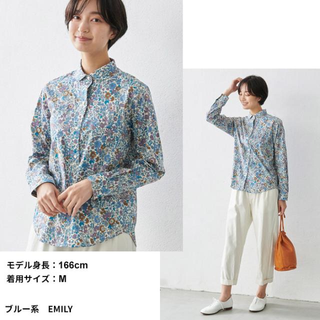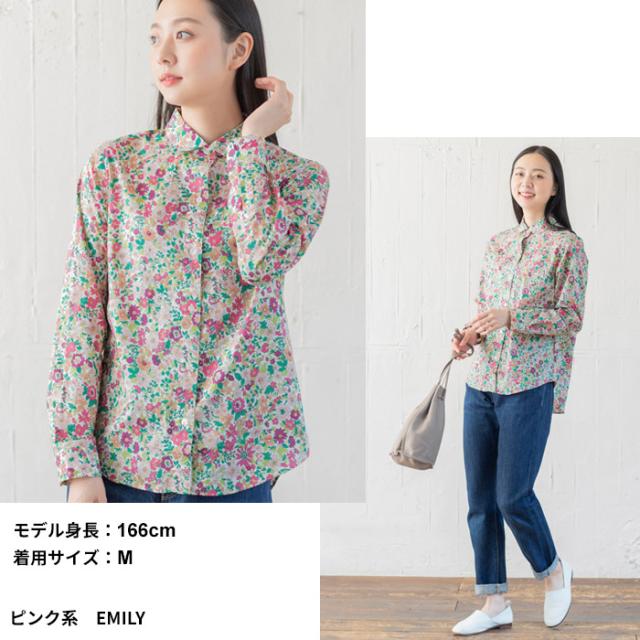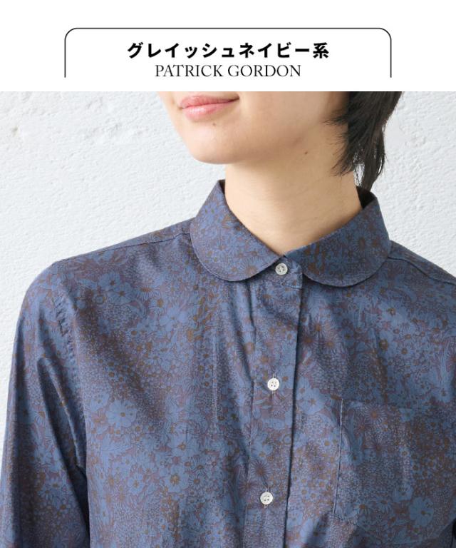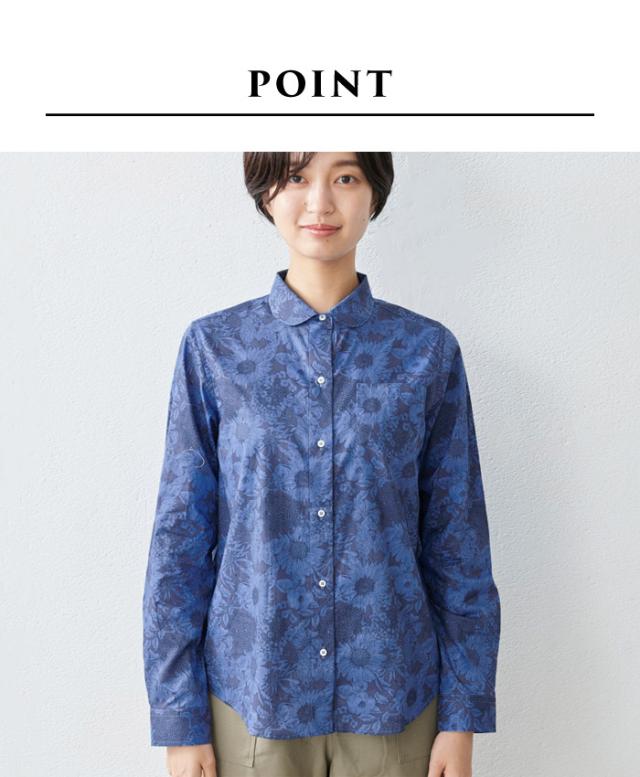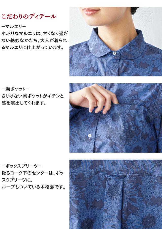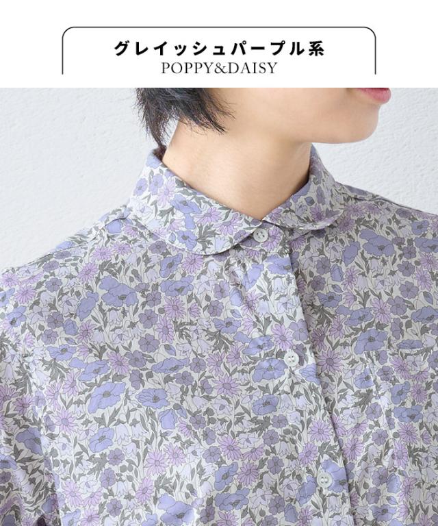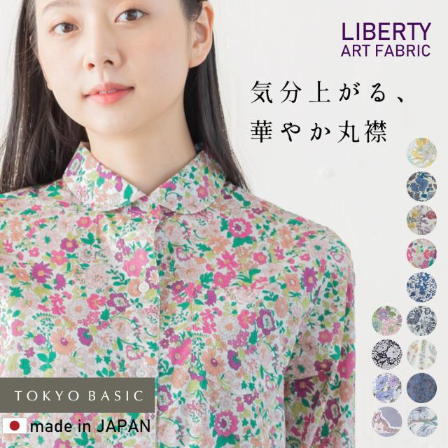 リバティプリント マルエリ シャツ 日本製 / リバティ ブラウス 長袖 レディース きれいめ トップス 40代 50代 60代 30代 シャツ 丸襟 ラウンドカラー 花柄 リバティー リバティ