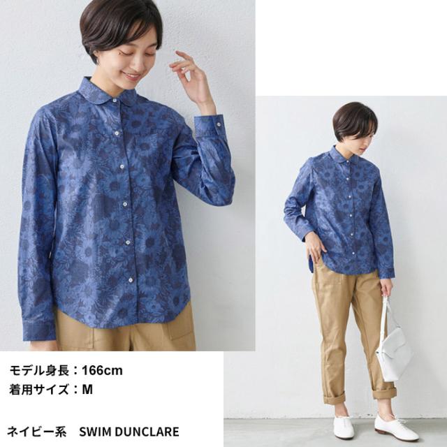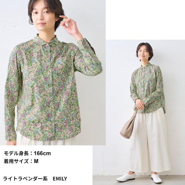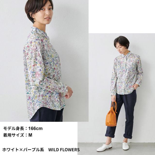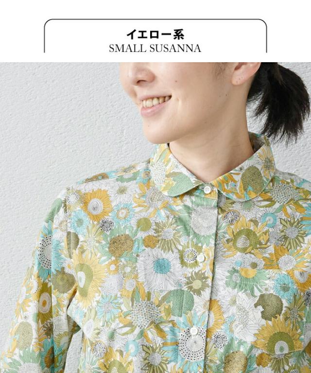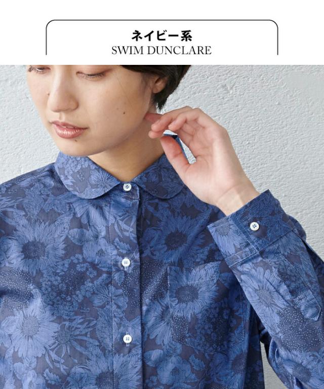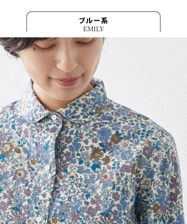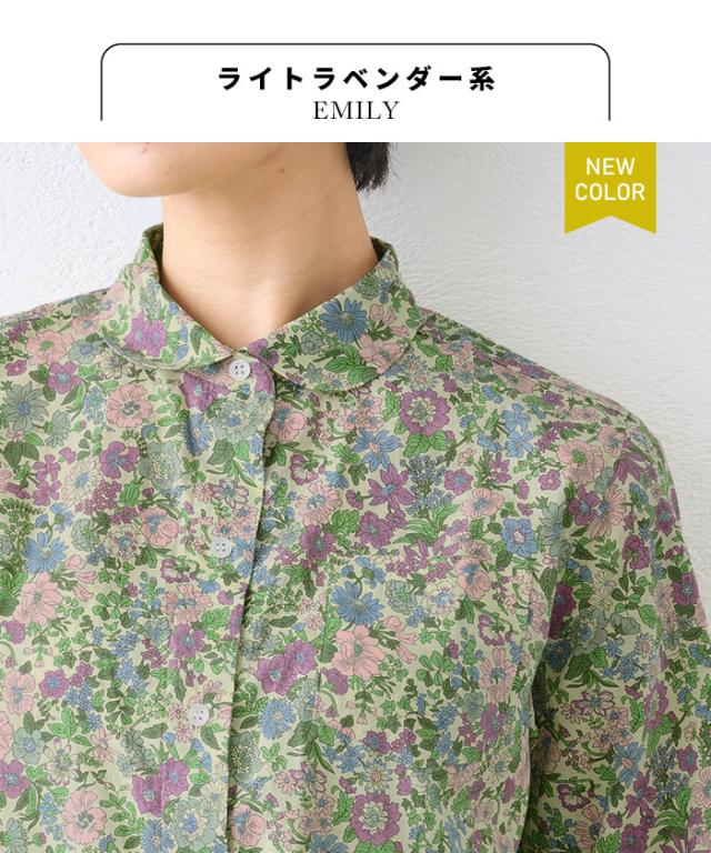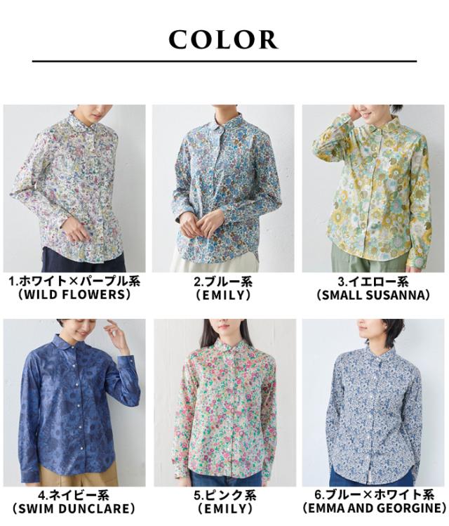 リバティ ブラウス 長袖 リバティプリント 丸襟 シャツ 日本製 40代 50代 60代 女性 ファッション レディース シャツ 丸襟 花柄 リバティー リバティ生地 タナローン liberty WILD FLOWER EMILY SMALL SUSANNA SWIM DUNCLARE パープル ブルー イエロー ネイビー ピンク ホワイト
