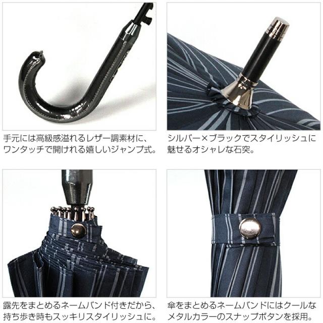 ●ハイセンスなストライプがクールでオシャレなメンズ傘です。 ●手元には高級感溢れるレザー調素材を使用!