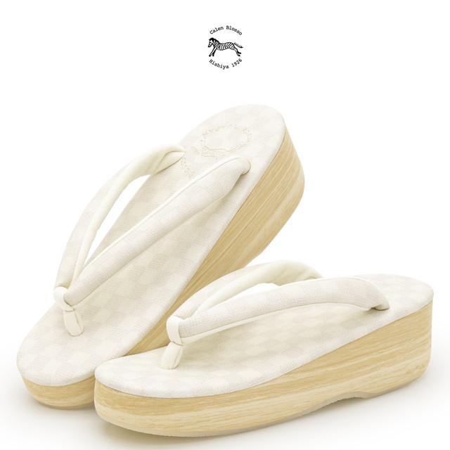 カレンブロッソ 草履 レディース カフェ草履 カフェぞうり 菱屋 白系 ホワイト アイボリー 市松格子 シマウマ 花尾サンダル 履物 和装小物 カジュアル 女性用 日本製 【S】【M】【L】