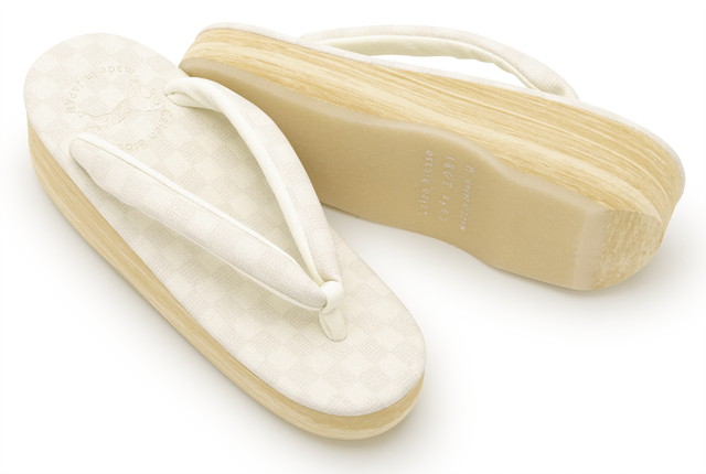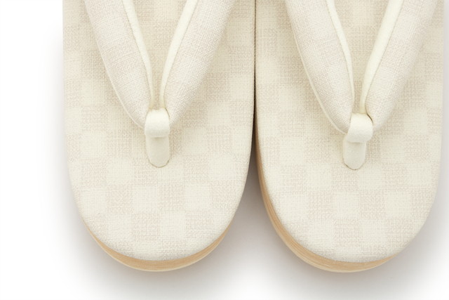 天と鼻緒は同素材のモダンな市松格子で、かかと部分にはシマウマがデザインされた鼻緒が特徴です。