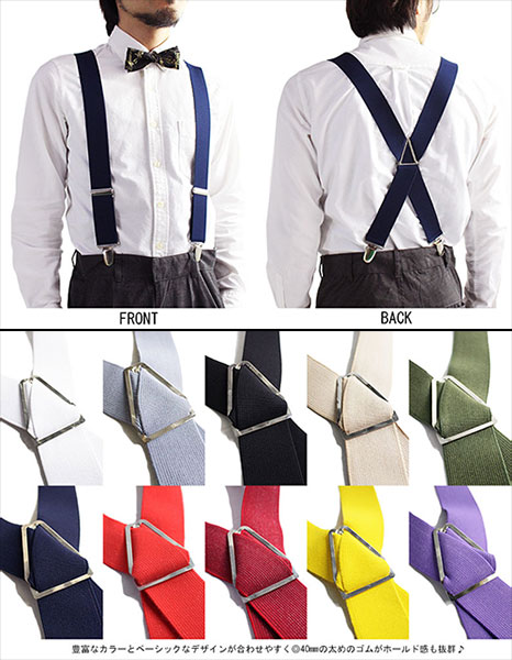 サスペンダー 日本製 X型 【40mm 太め】 カラー サスペンダー 極太 メンズ フォーマル ラッピング無料