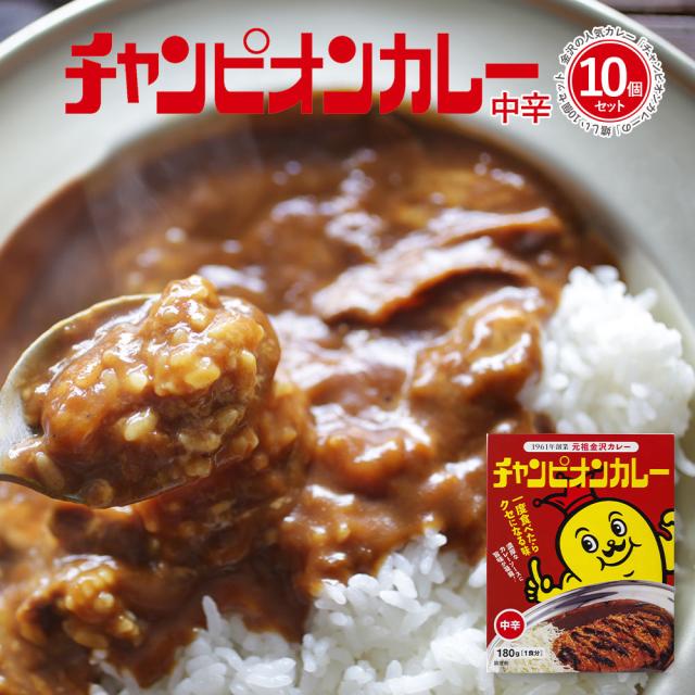 レトルトカレー 中辛 詰め合わせ 金沢カレーの元祖 チャンピオンカレー 父の日 中辛 180g 1袋 10個セットTV 秘密のケンミンSHOWで紹介されました 石川 北陸 母の日