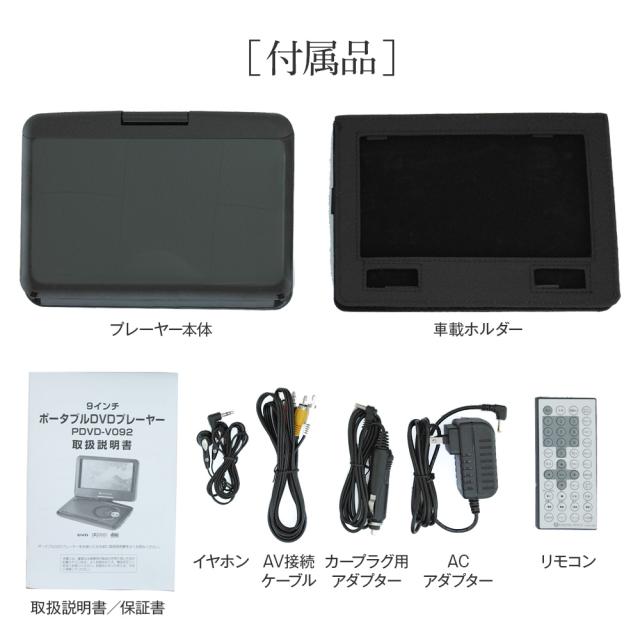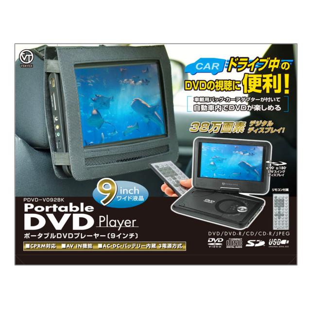 ポータブルDVDプレーヤー 9インチ液晶 安心の1年保証 ポータブル dvdプレーヤー ポータブル 車載 車載用バッグ付き 後部座席 持ち運び 旅行 PDVD-V092 VERTEX 父の日