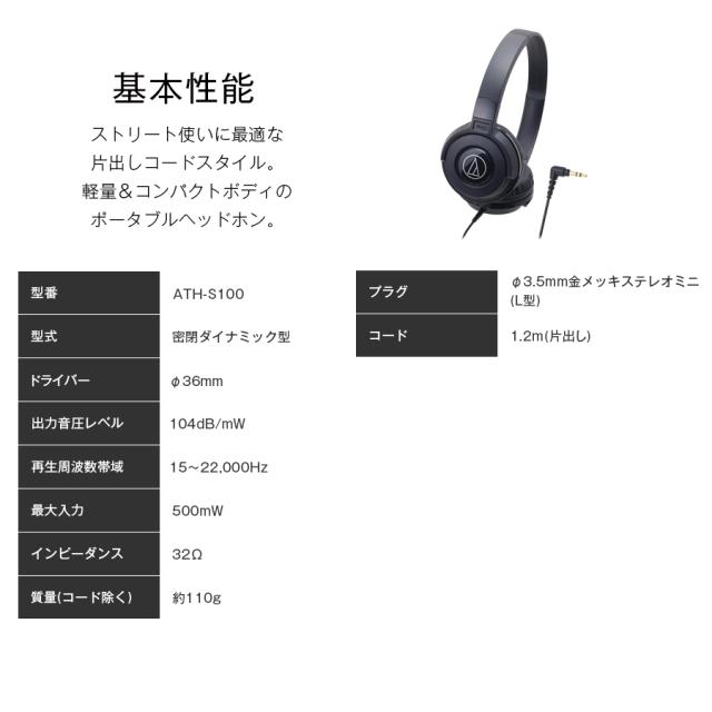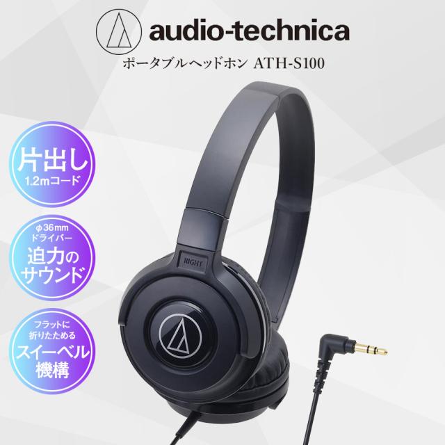 オーディオテクニカ ヘッドホン ATH-S100 BK ヘッドフォン オーバーヘッドホン 有線 高音質 重低音 安い