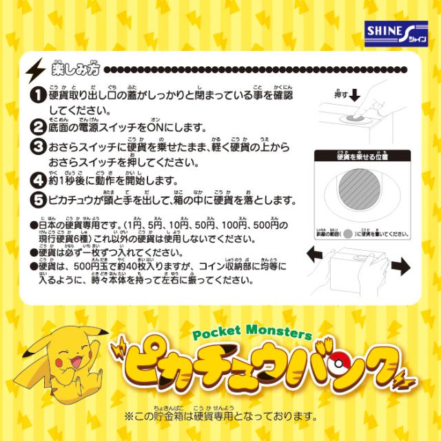 貯金箱 おもしろ ピカチュウバンク 500円玉 キャラクター かわいい おもしろ貯金箱 おもちゃ シャイン いたずらBANK RSL