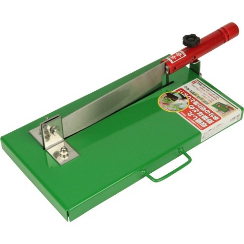 | ・切台サイズ(約):幅220mm×長さ405mm×厚30mm ・刃長:約260mm ・板厚:3.0mm ・硬度(刃部):HRC48〜50 ・材質:刃部:ステンレス刃物鋼。本体:鉄。柄部:木 |