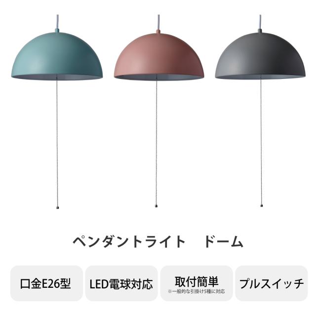 ペンダントライト 2灯 ドーム LED対応 スチール 天井照明 4.5〜6畳用 ( 照明器具 ライト ペンダント おしゃれ ペンダント照明 LED 電球 引っ掛けシーリング シェード 丸 パステルカラー )