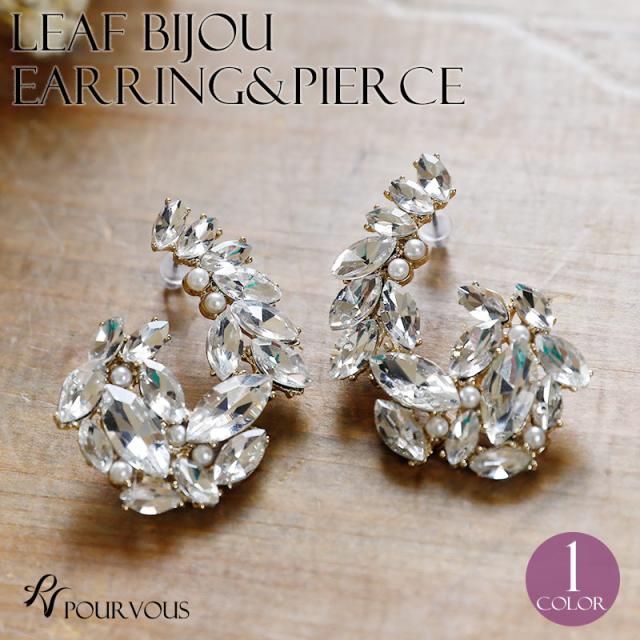 リーフビジューイヤリング&ピアス/ a177