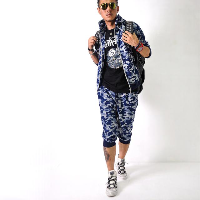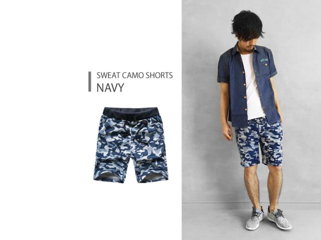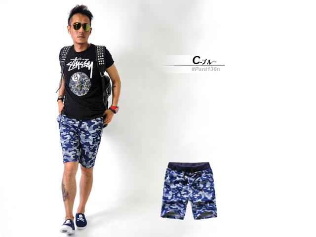 数量限定 迷彩柄 スウェットショーツ ショートパンツ 短パン 総柄 ハーフパンツ [3色]#Pant13 M便 BL