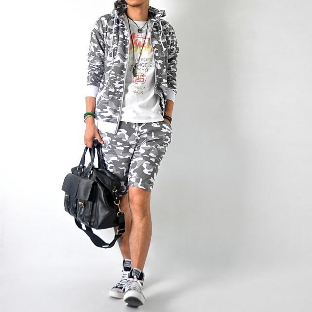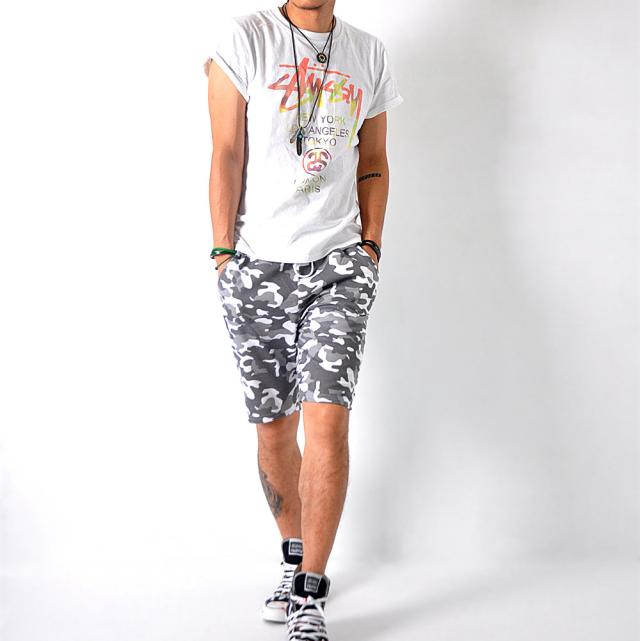 ショーツと迷彩柄のタッグでオシャレ度MAX!シンプルなトップスやシューズとマッチするので