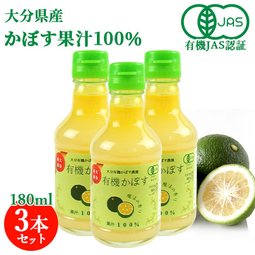 有機JAS認証 有機栽培かぼす果汁100% 180ml×3本セット 大分有機かぼす農園
