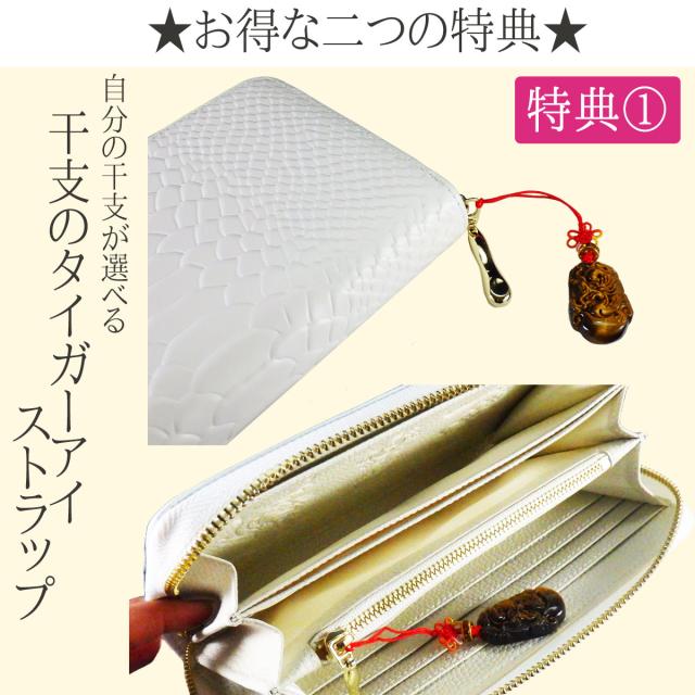 白蛇財布 金運財布 開運長財布 風水財布 長財布 白 風水 金運アップグッズ ヘビ柄財布 ラウンドファスナー 財布 本革 金運 メンズ レディース 大容量 財布 プレゼント 2025 (金運祈願風水白蛇長財布牛本革干支が選べるタイガーアイチャーム&五姓財神カード付)