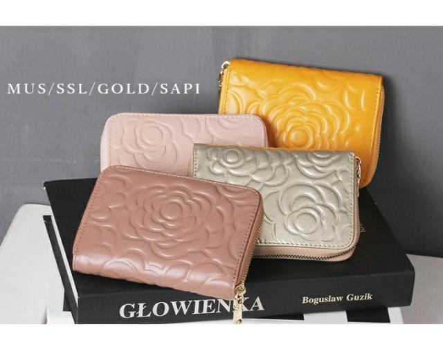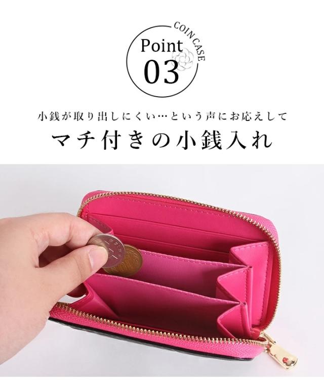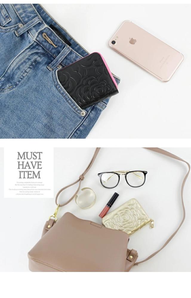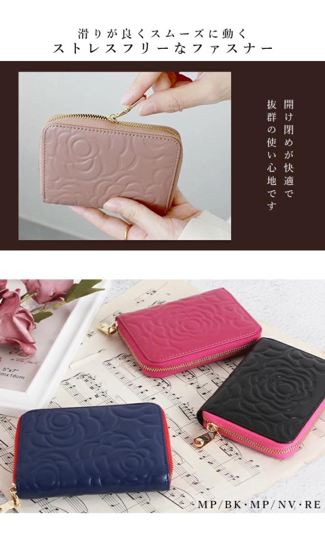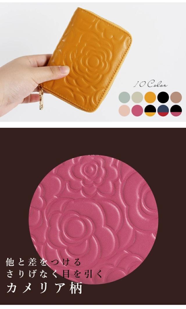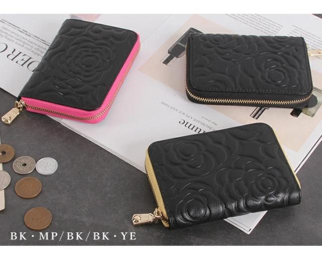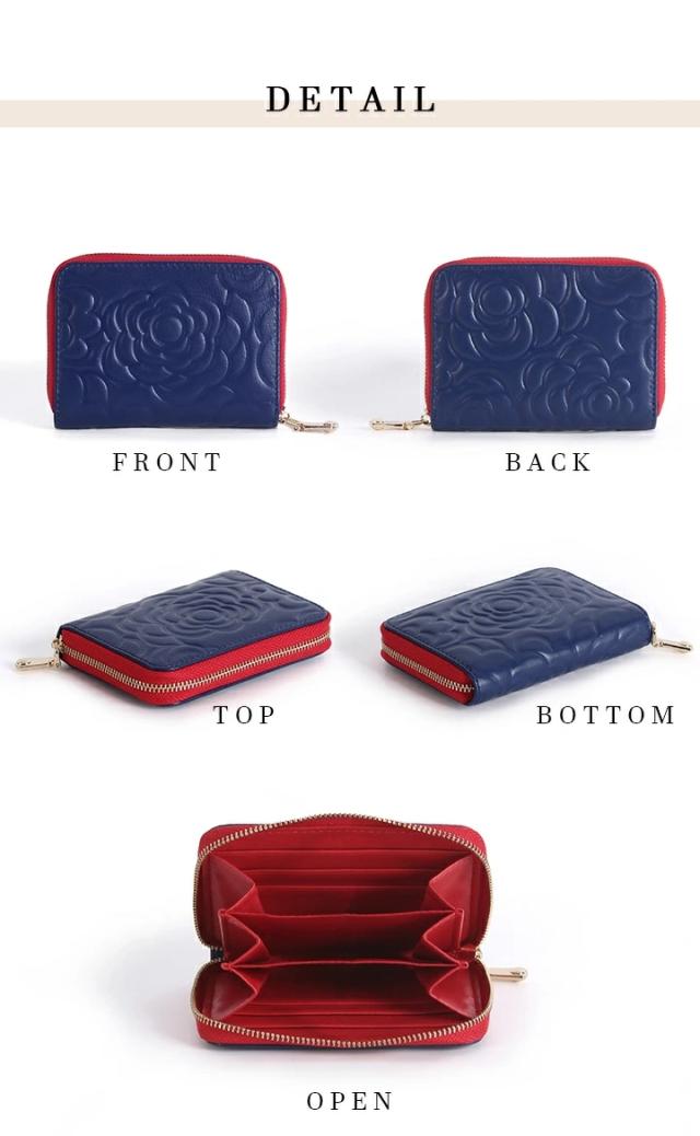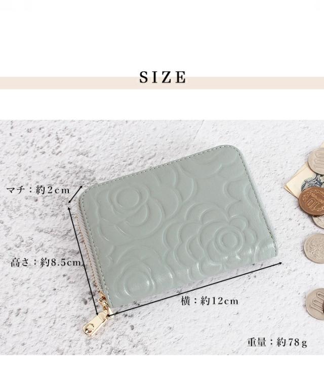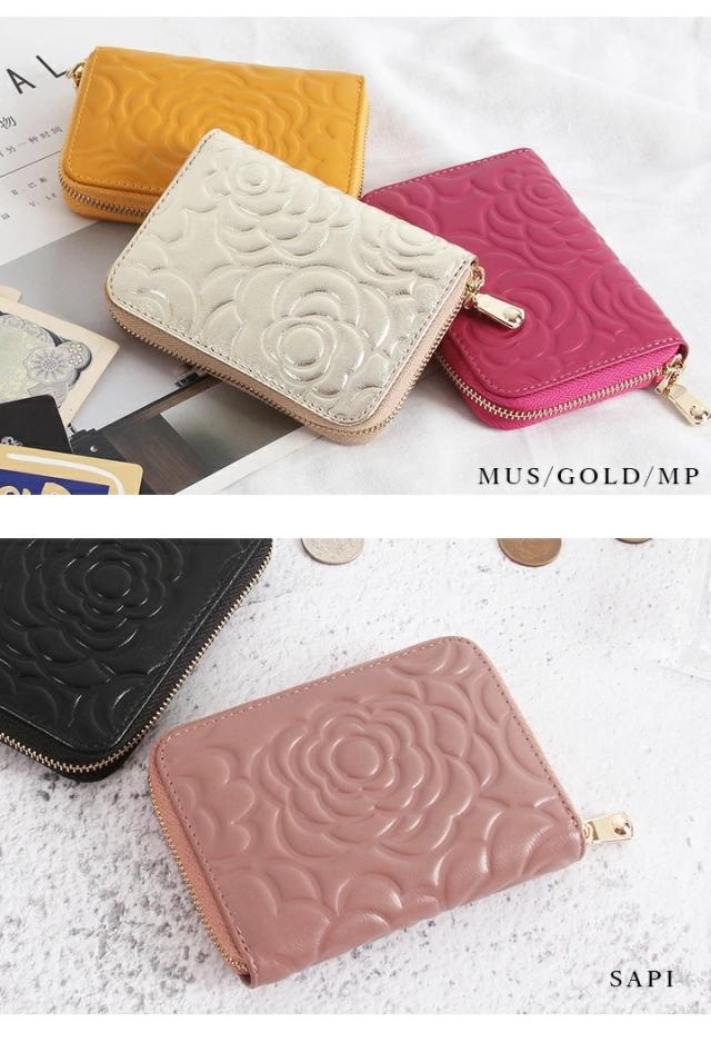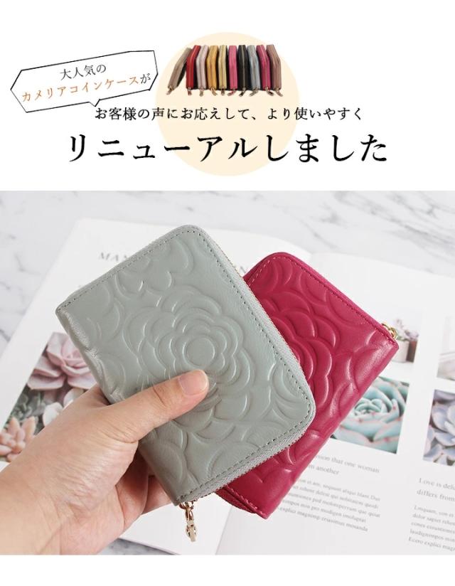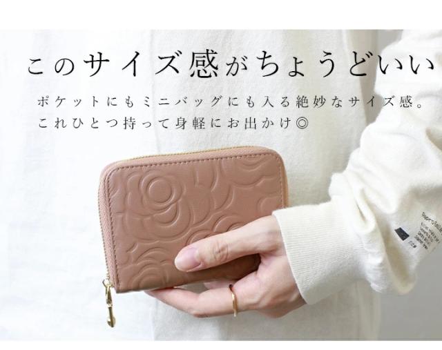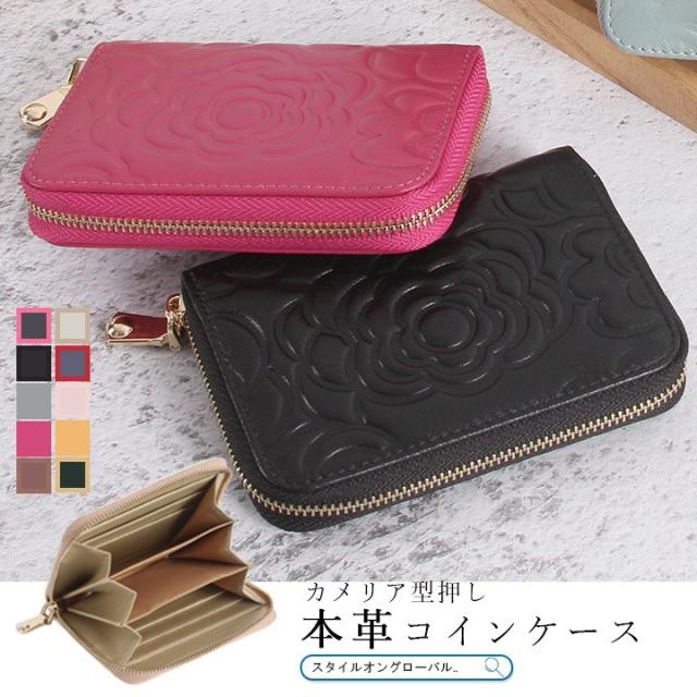 ミニ財布 レディース コインケース 本革 カメリア型押し 小銭入れ ラウンドファスナー 軽量 コンパクト 小型財布 かード入れ おしゃれ かわいい 小さい 牛革 レザー 女性らしい 多収納 ギフト プレゼント【8528】