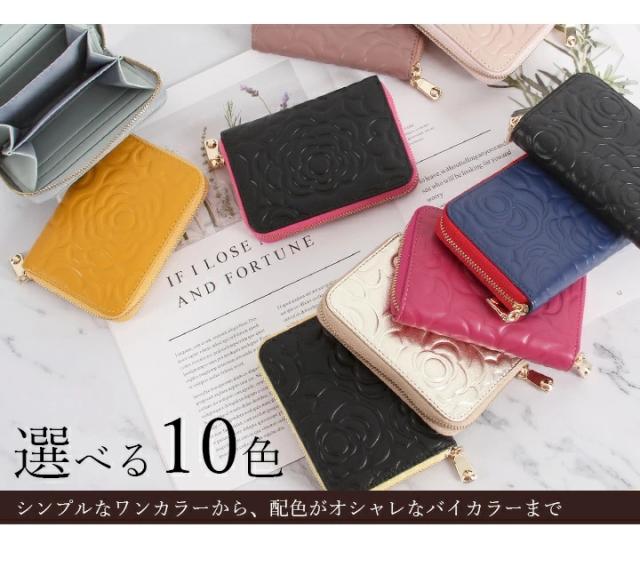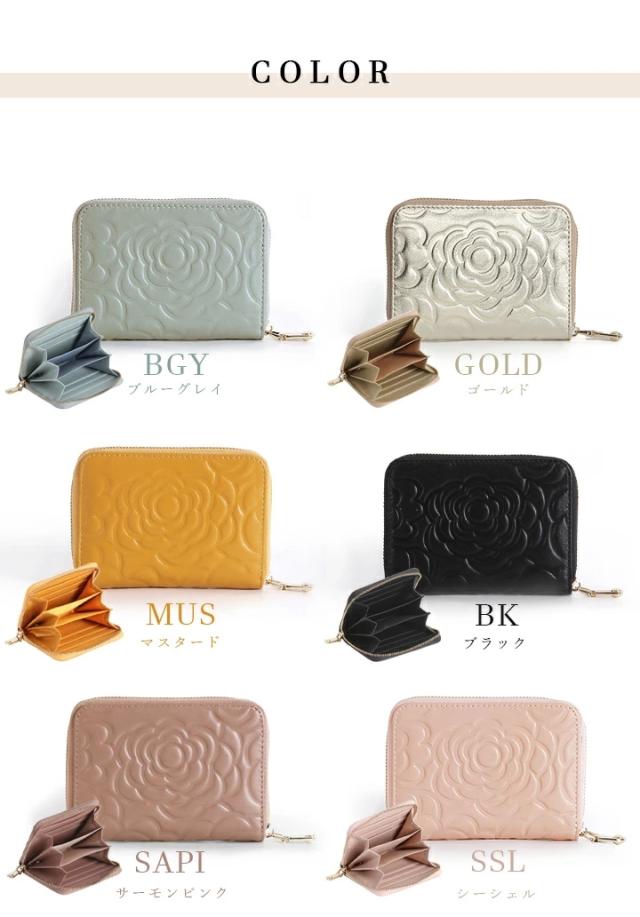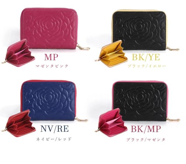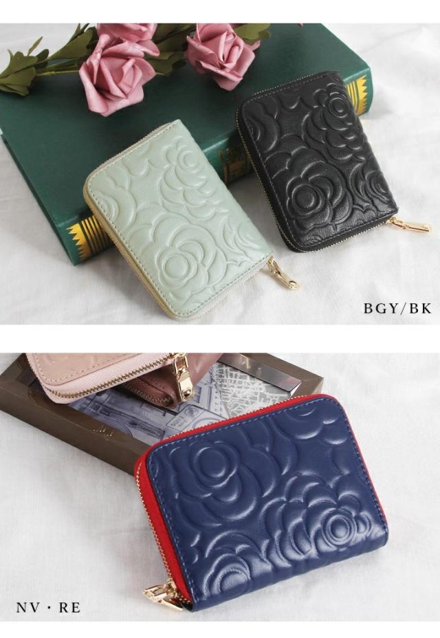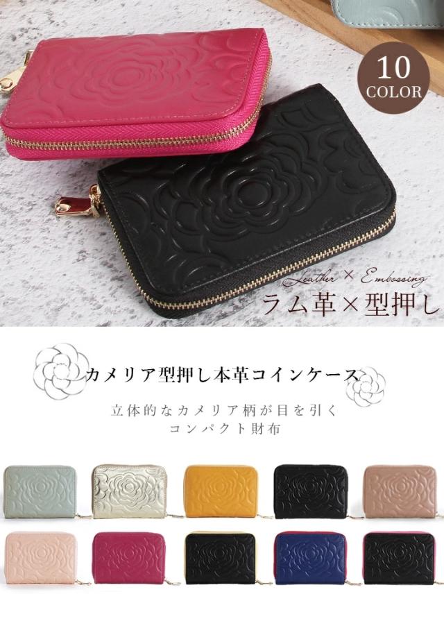 【選べる10色】★レディース カメリア型押し 本革 コインケース 小型財布 小銭入れ
