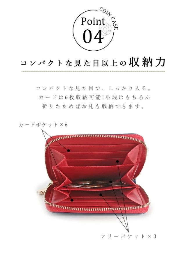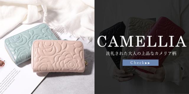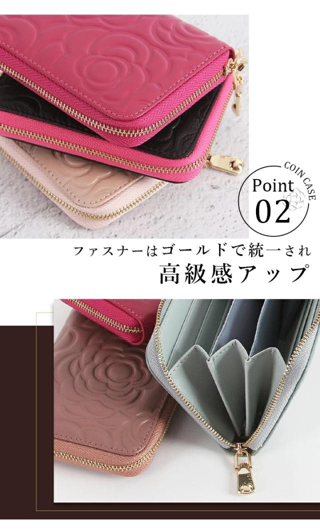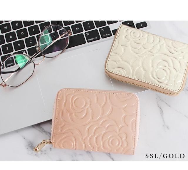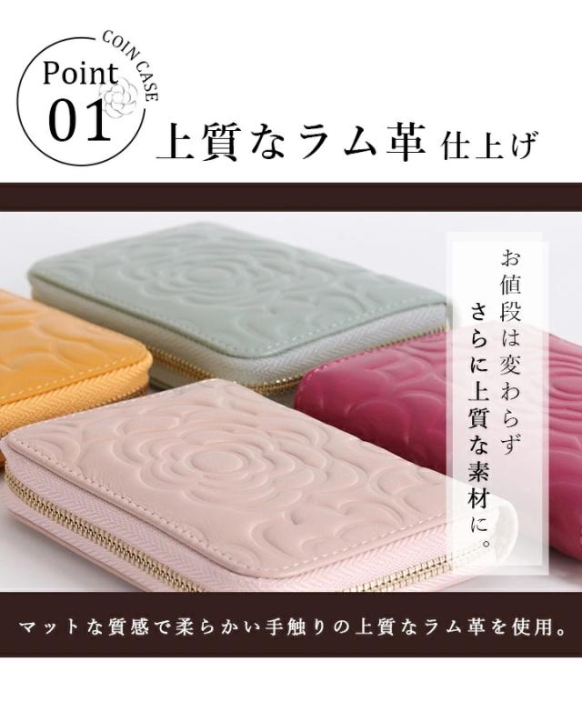 カメリア型押し仕上げが上品で女性らしいデザインの本革コインケース。