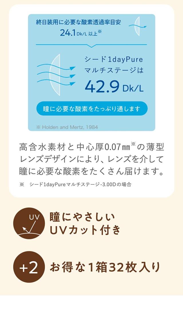 【送料無料】ワンデーピュアマルチステージ32枚(遠近両用)2箱 コンタクトレンズ ワンデー 1day 1日使い捨て ピュア うるおい シード