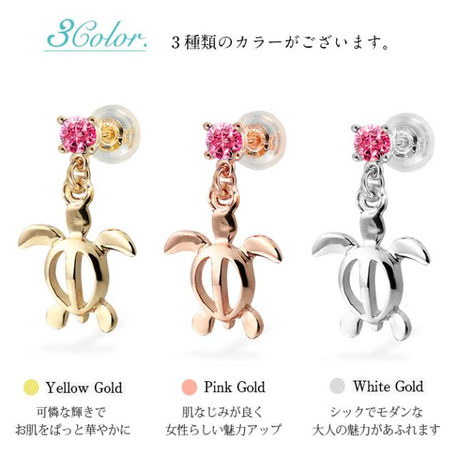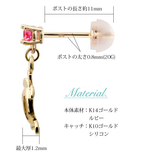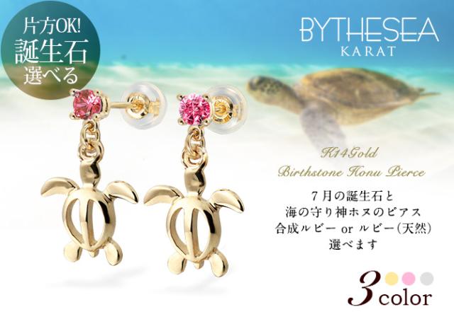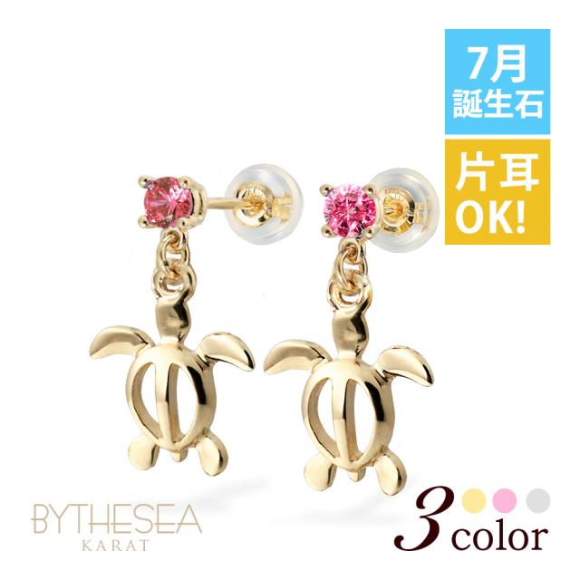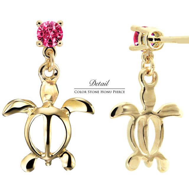 ハワイアンジュエリー ピアス ホヌ ピアス 7月の誕生石 ルビー 幸せ運ぶホヌピアス 揺れる カラーストーン 片耳(1個)購入可 K14イエロー ピンク ホワイト 選べる 14K パーツ シリコンキャッチ 彼女 妻 女性 レディース プレゼント 母の日 【品番:GE501-7】