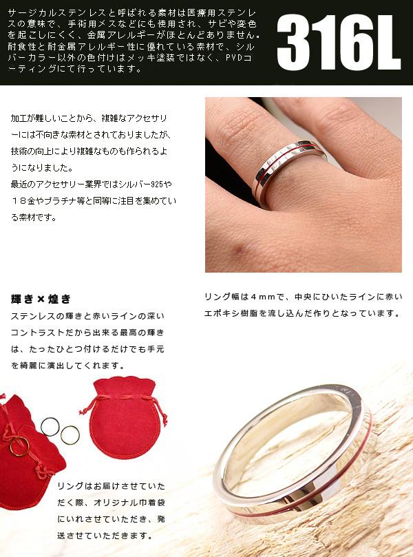 指輪 リング レディース メンズ レッドライン【送料無料】サージカルステンレスリング ファッションリング ペアリングに ペア カップル プ