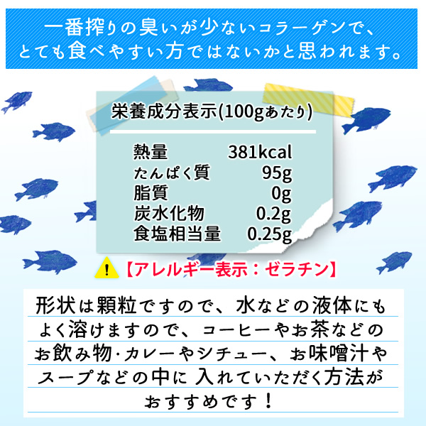 原材料名:魚皮、魚鱗(アレルギー表示:ゼラチン)