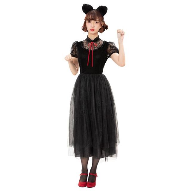 クラシックロングキャット レディース 大人サイズ 黒猫 ねこ CAT ロング丈 クラシック コスチューム 衣装 コスプレ 仮装 変装