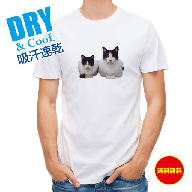 かわいい Tシャツ シロクロ二匹 ネコ 猫 ねこ 雑貨 かわいい T シャツ メンズ 半袖 ロゴ 文字 春 夏 秋 インナー 安い 面白い 大きいサイズ 洗濯 ポリエステル 送料無料