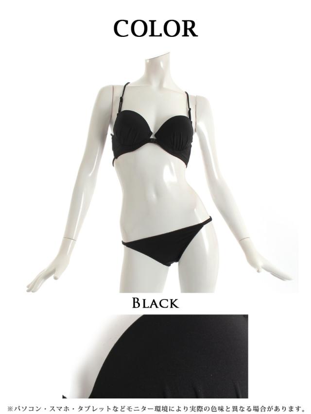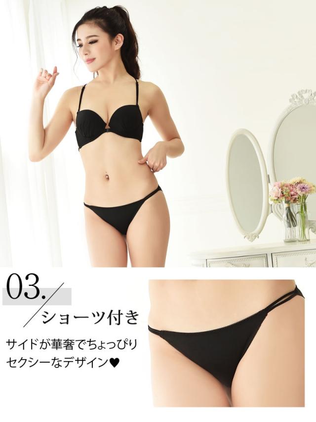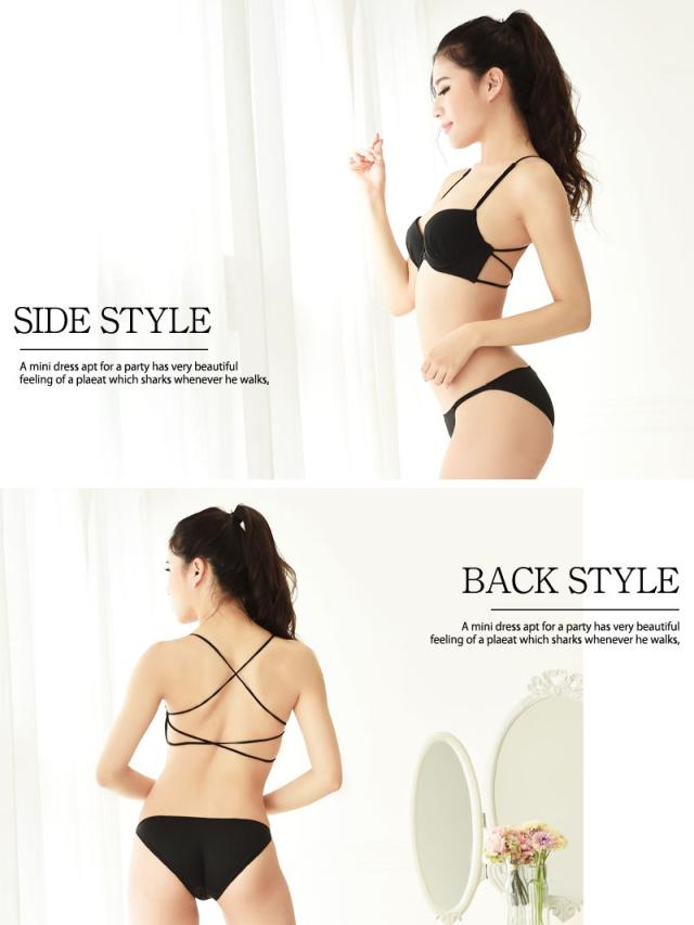 ☆バックスタイルのクロスしたコードがセクシーさを演出する黒ブラ&ショーツセット♪