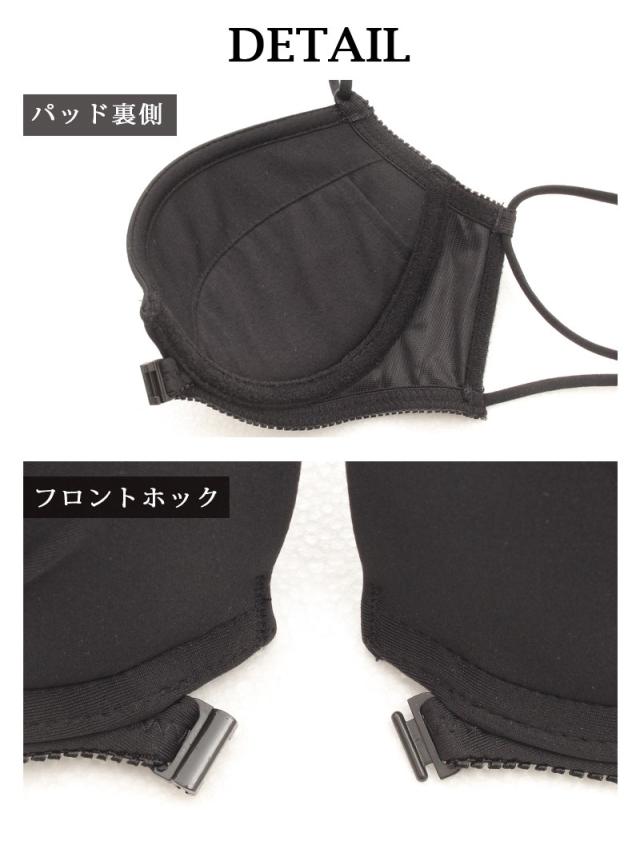 ☆フロントホックで着脱楽ちんなワンカラーブラは背中が開いたドレスの魅せブラコーデを楽しめる背中魅せブラジャー♪