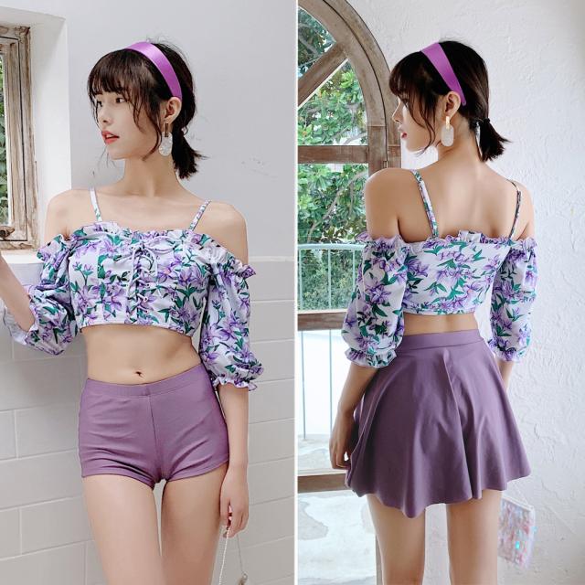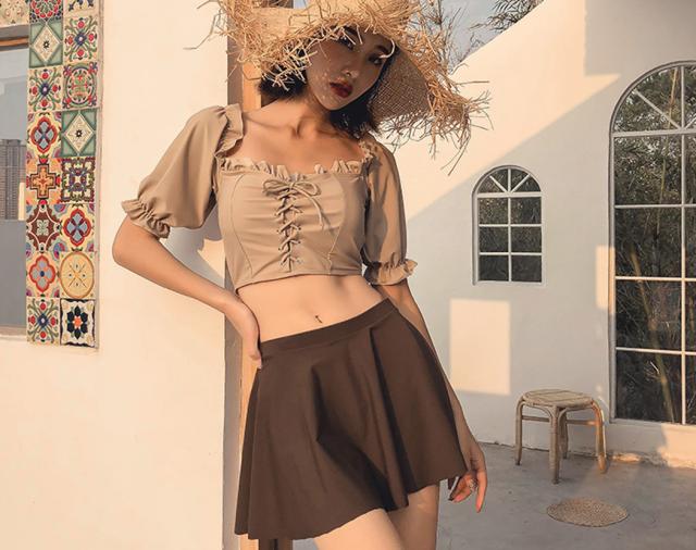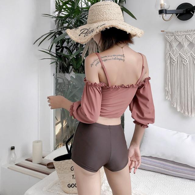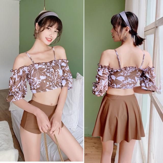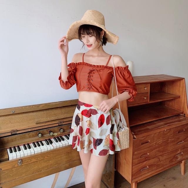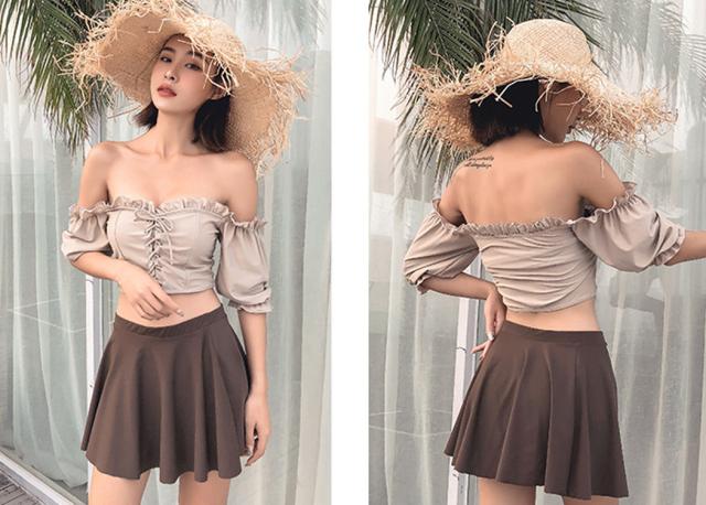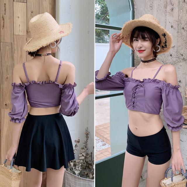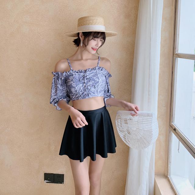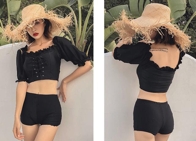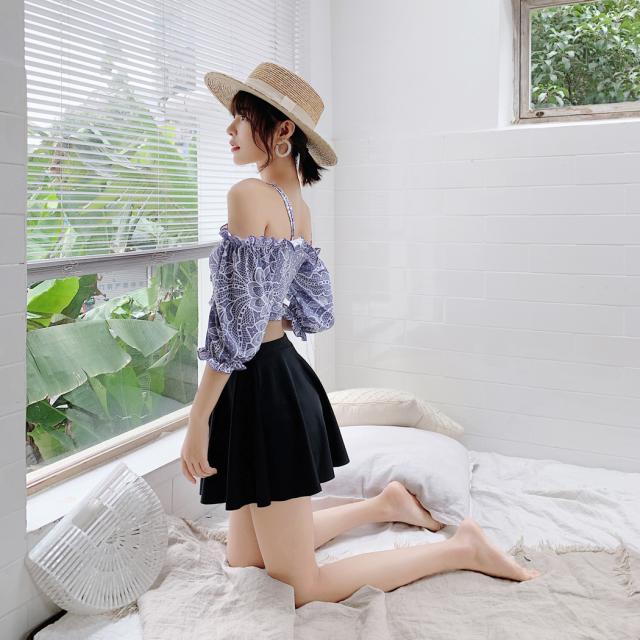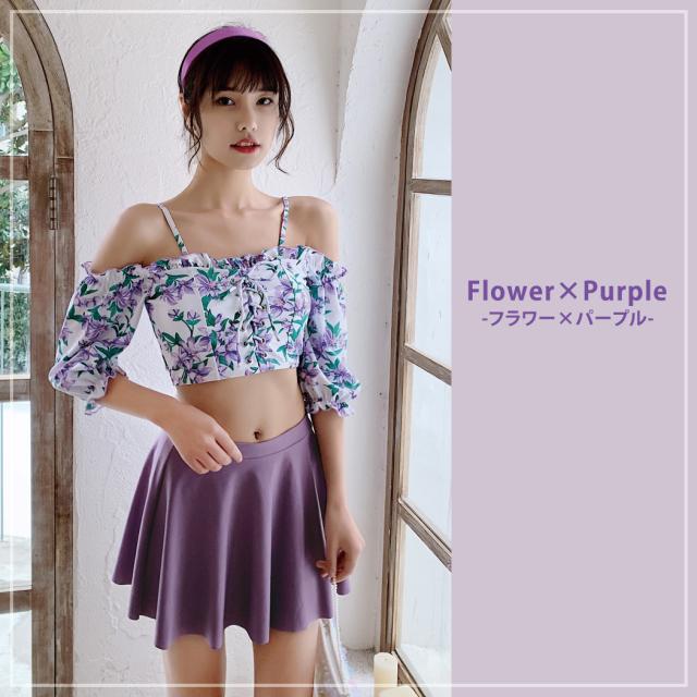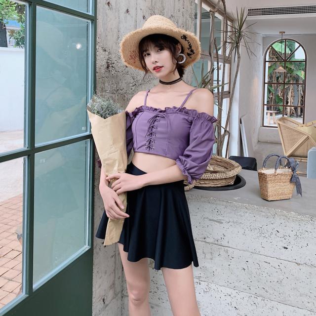 水着 レディース ビキニ オフショルダー 2way フリル スカート 3点セット 体型カバー水着 ぽっちゃり 20代 30代 ママ水着 バックフリル セクシー シンプル レースアップ オトナ女子 パッド付き バスト 盛れる 二の腕 お腹 お尻 太もも カバーアップ 黒