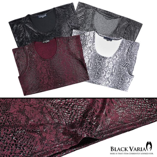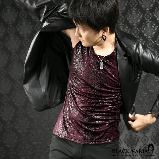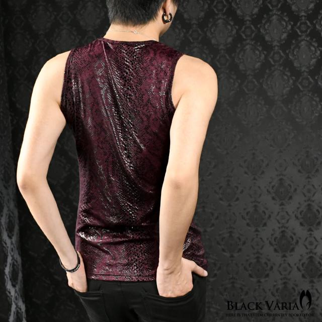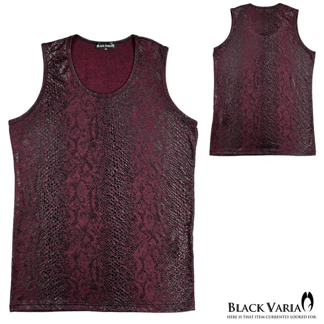 メール便可/1枚まで タンクトップ パイソン柄 蛇 メンズ 光沢 アニマル 総柄 日本製 ストレッチ 細身 mens(ワインレッド赤) 173300