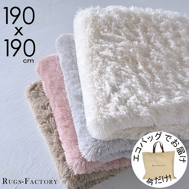 シャギーラグ ラグマット オールシーズン 洗える ふわふわ あったか ラグ 2畳 夏 夏用 ラグカーペット ウォッシャブル 190x190 エコバッグ 折りたたみ