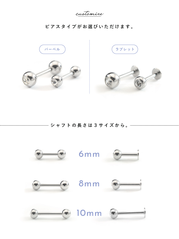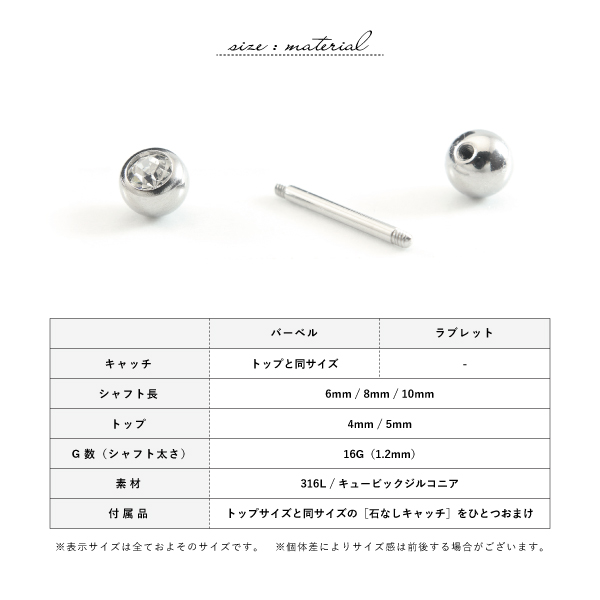 [おまけキャッチ付き] バーベル つけっぱなし ステンレス サージカルステンレス 医療用ステンレス 金属アレルギー アレルギーフリー 316L ボディピアス 16G ジュエル 石付き カスタム メンズ レディース シンプル ファーストピアス