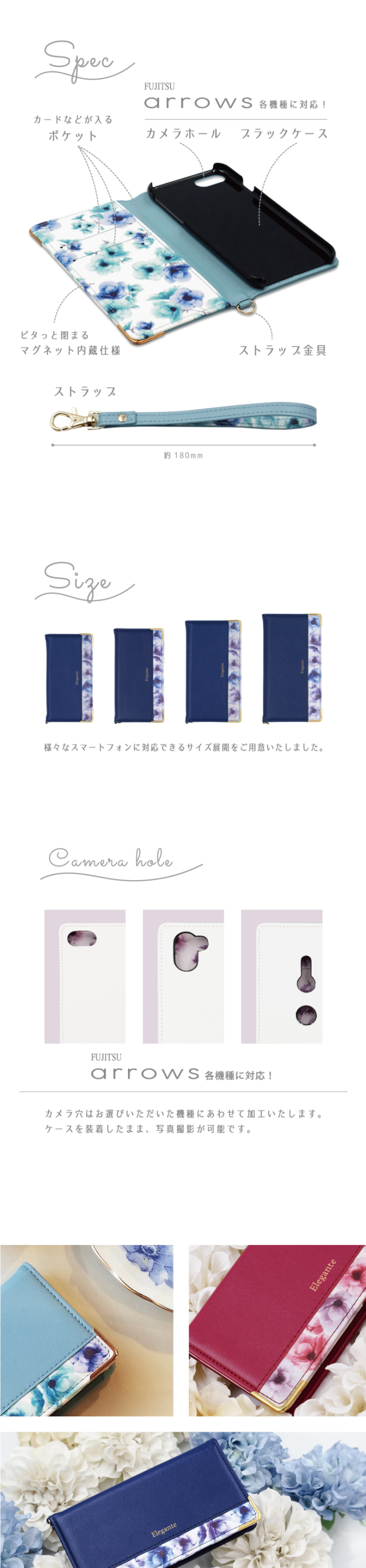 公式 Elegante arrows we2 スマホケース 手帳型 arrows we2 plus ケース 手帳 アローズ we 手帳型 ケース arrows u 801FJ スマホケース ブルーミー 花