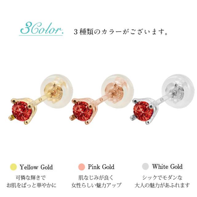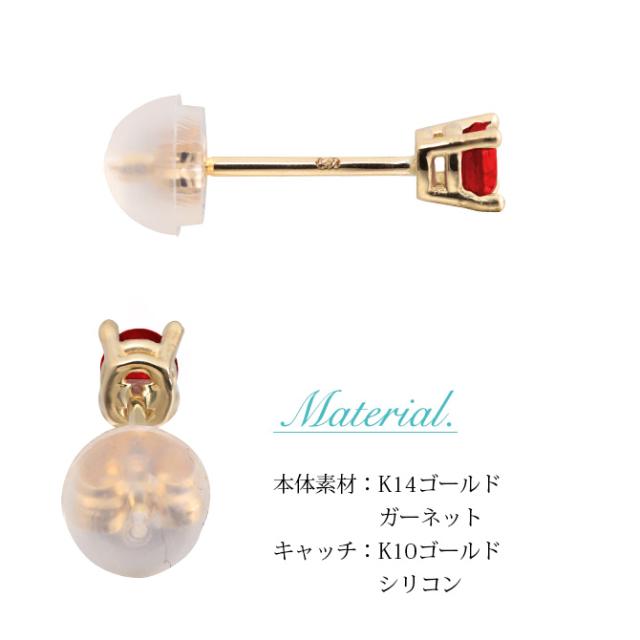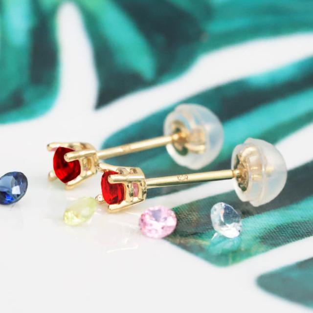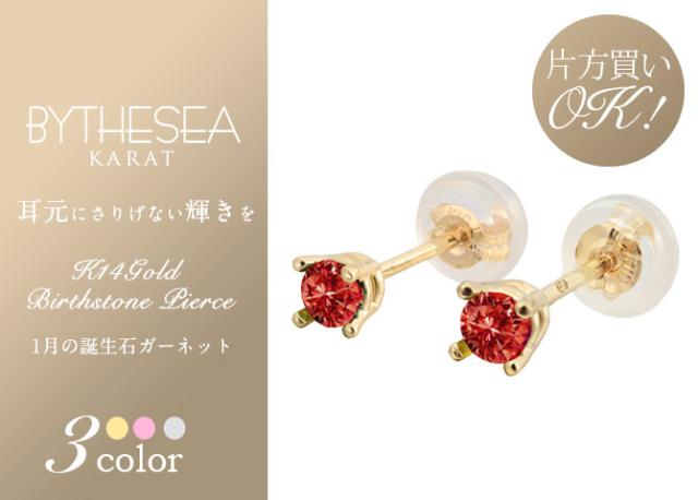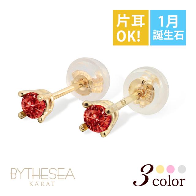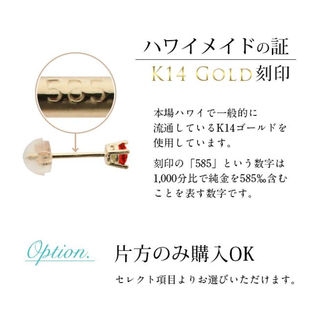 ハワイアンジュエリー ピアス 1月の誕生石 ガーネット スタッドピアス イエロー ピンク ホワイト 選べる カラーストーン 片耳(1個)購入可 K14ゴールド 14K シリコンキャッチ シンプル BY THE SEA 20G ゲージ バイザシー プレゼント クリスマス 【品番:GE107-1】