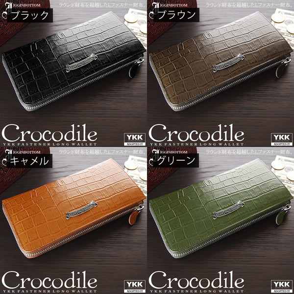 商品 メタルプレート牛革クロコ型押しLファスナー長財布