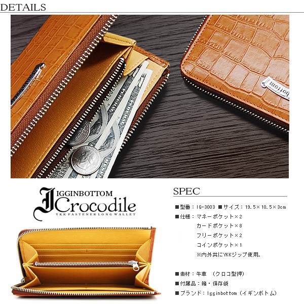 Igginbottom[イギンボトム] メタルプレート牛革クロコ型押しLファスナー長財布 IG-3003 2372449 pre32
