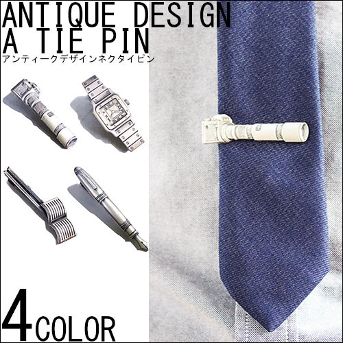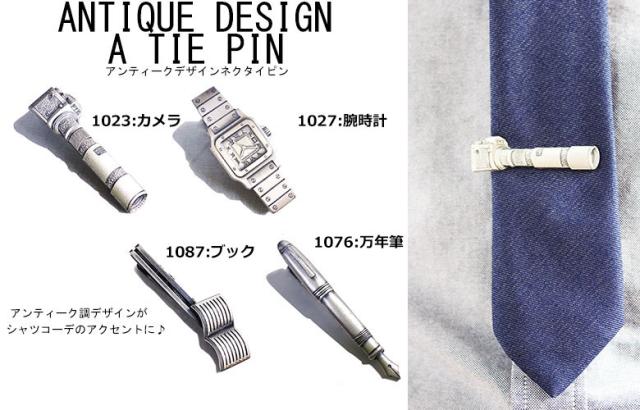 日本製 ビジネスシリーズ アンティーク カジュアル ネクタイピン タイピン カメラ 万年筆 ノート 腕時計