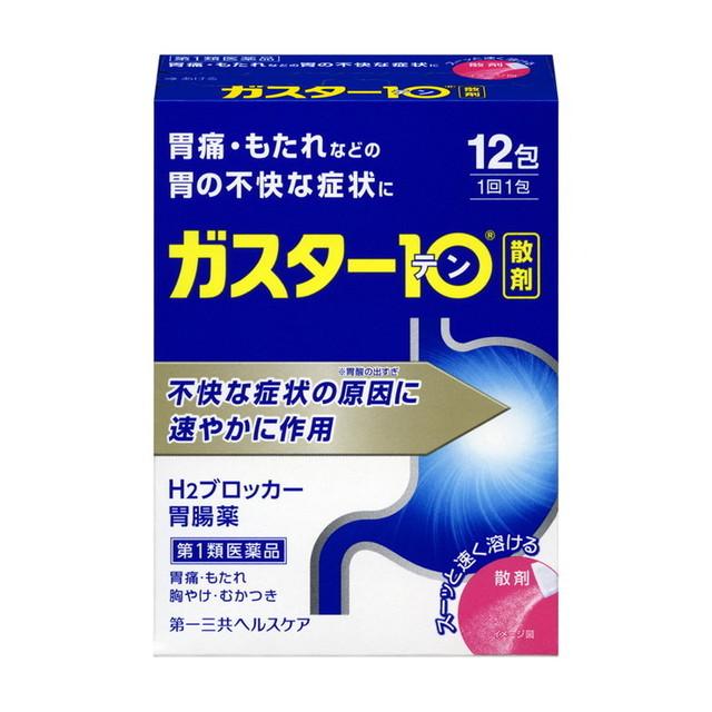 セルフメディケーション税制対象※「ファモチジン製剤(ガスター10シリーズ等)」は、より安全にご使用頂くためご購入個数を制限しております。万が一、購入個数を超えたご注文を発見した場合には、恐れ入りますがキャンセルさせて頂きます。●「ガスター10〈散〉」は、胃の症状の原因となる胃酸の出過ぎをコントロールし、胃粘膜の修復を早める薬で、胃酸中和型の胃腸薬とは異なるタイプの胃腸薬です。