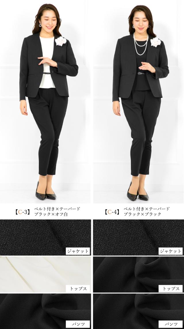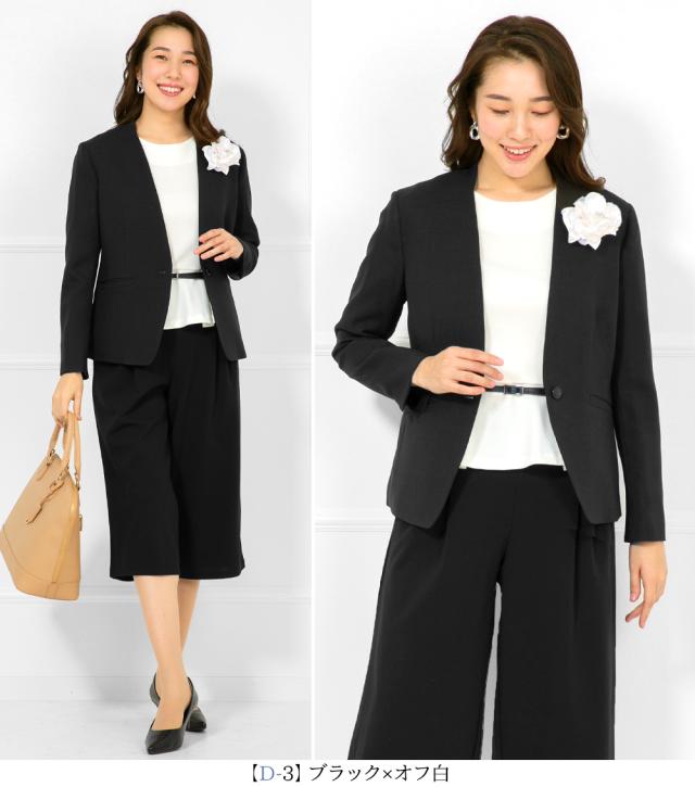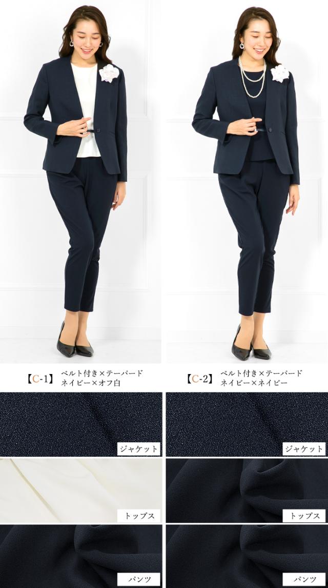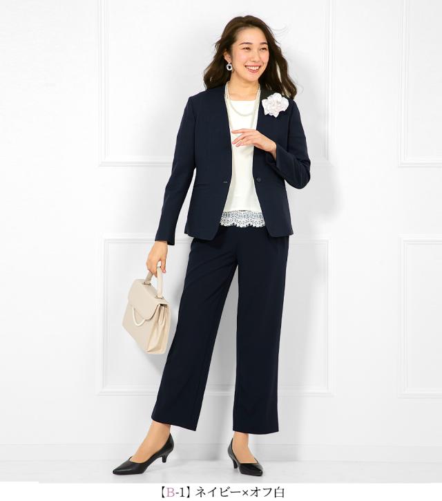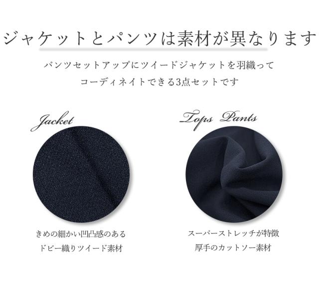 デザインが選べるジャケットとストレッチ素材トップス&パンツのアンサンブルセットです。