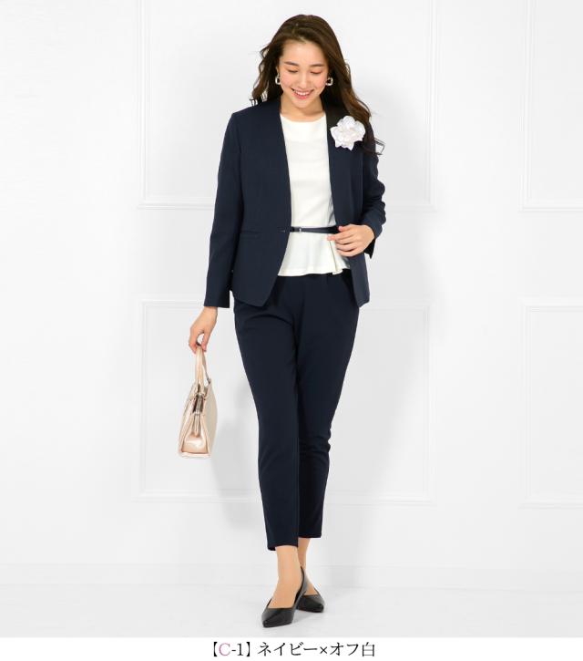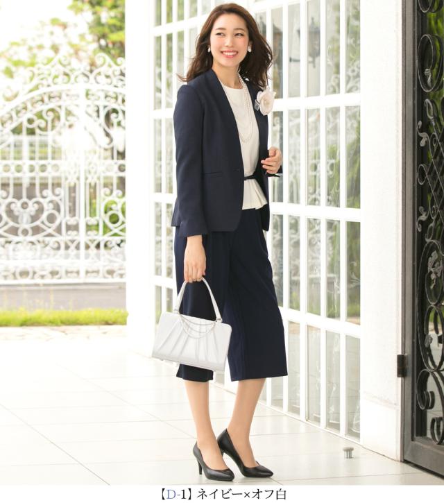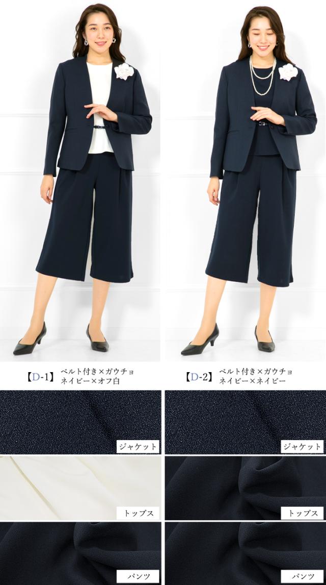 ベージュ・ネイビー(紺色)・ブラック(黒) トップスはオフホワイト(オフ白)もあり |