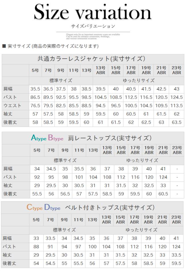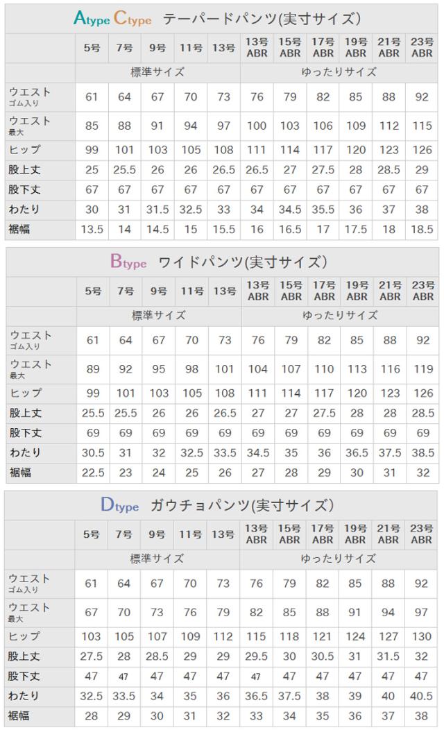 5号・7号・9号・11号・13号・15号・17号・19号・21号・23号 小さいサイズ・大きいサイズ(ラージサイズ)。ゆったりとしたABR体あり |